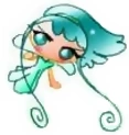 Ihre Elfe Miko/Yaya hat auch grüne bzw. türkise Haare, Augen und Kleidung.